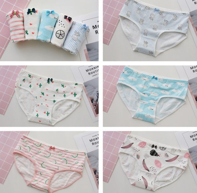 女裝純棉低腰全棉可愛卡通三角褲 5件裝 AL015