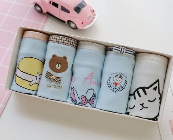 女裝純棉低腰全棉可愛卡通三角褲 5件裝 AL013